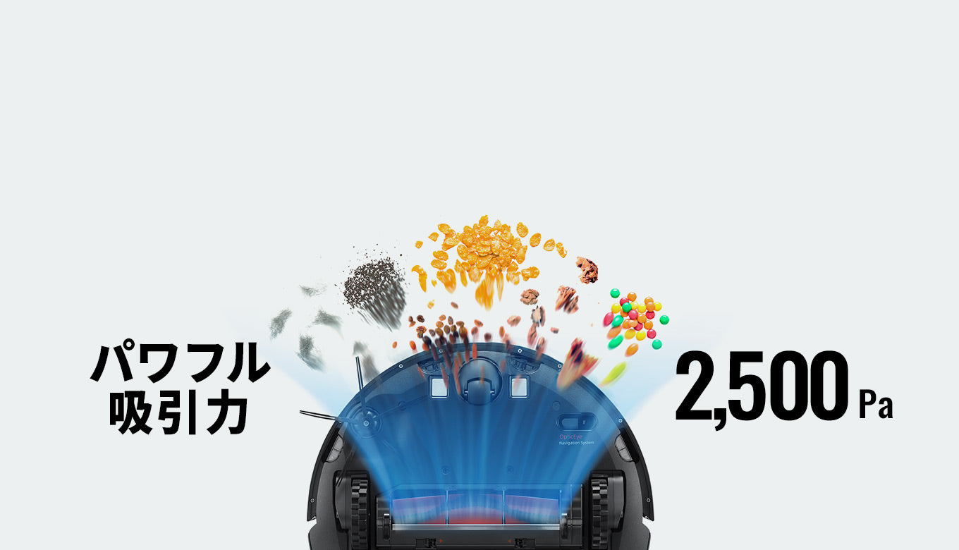2,500Paのパワフルな吸引力で、微細なハウスダストからペットのトイレ砂まで一気に吸い込みます。