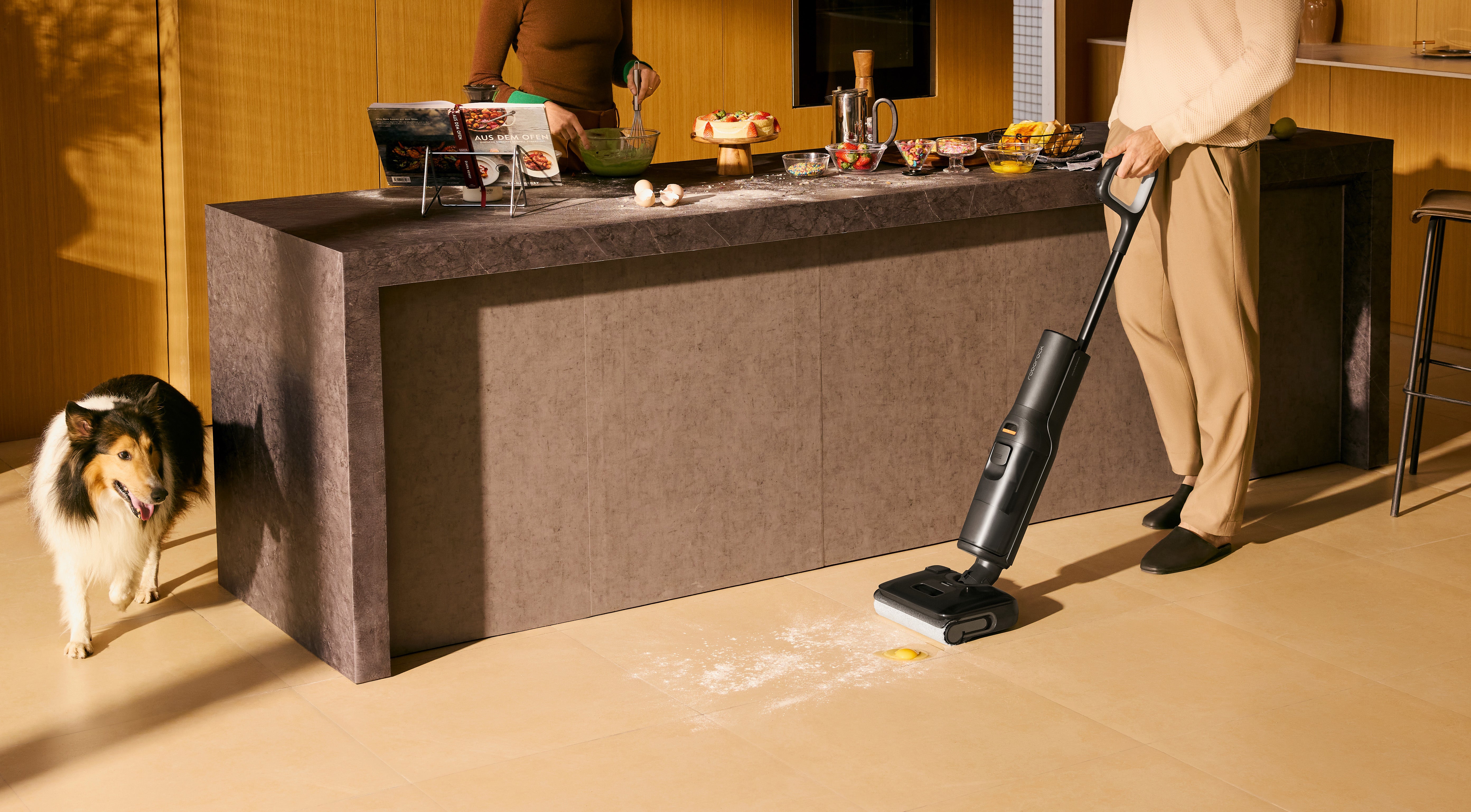 2つのスクレーパーで、水跡のない床を実現します。平型スクレーパーが拭き残しを防ぎ、サメの歯型スクレーパーが毛をキャッチして、なめらかでキレイな仕上がりを実現します。