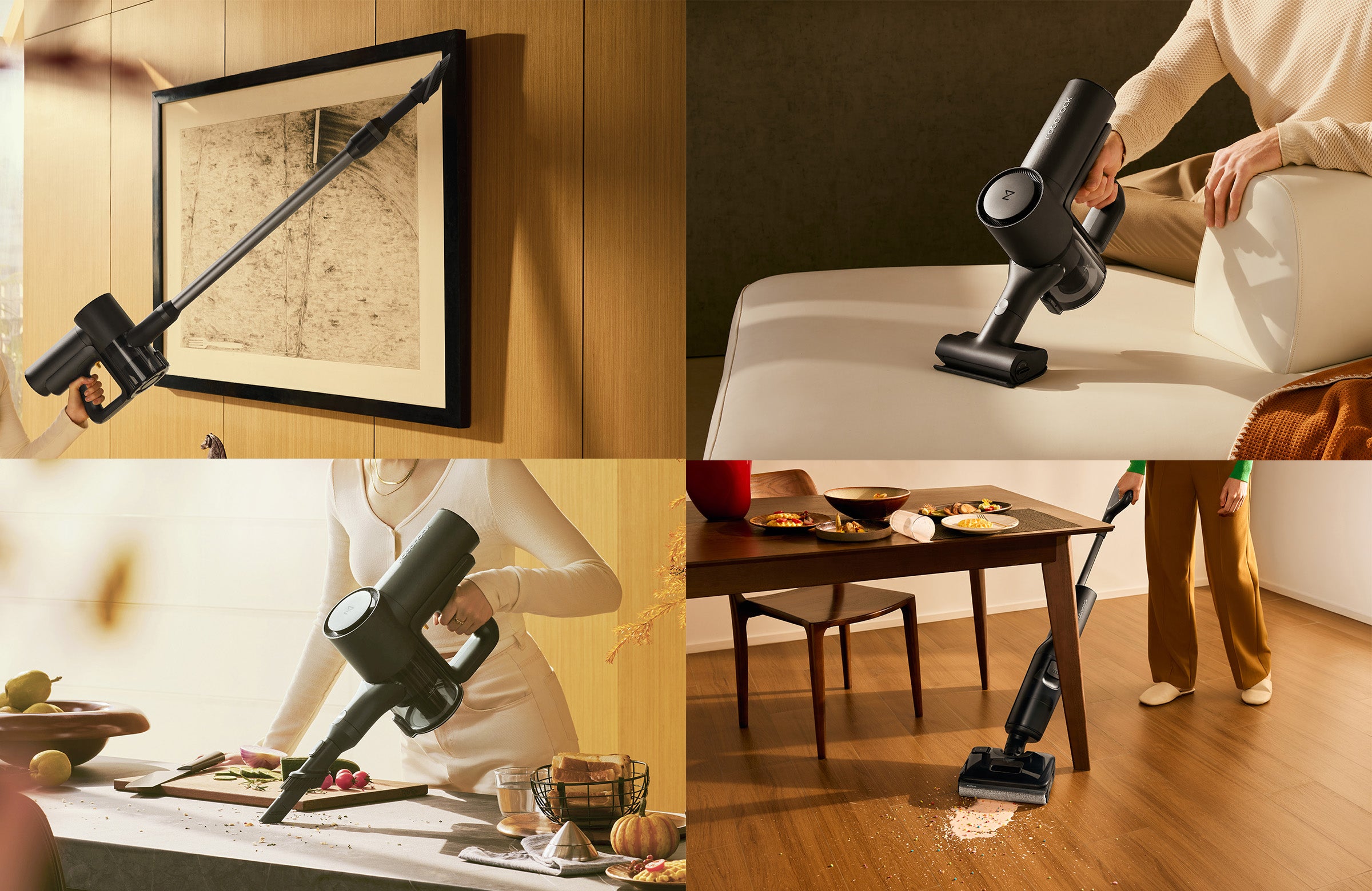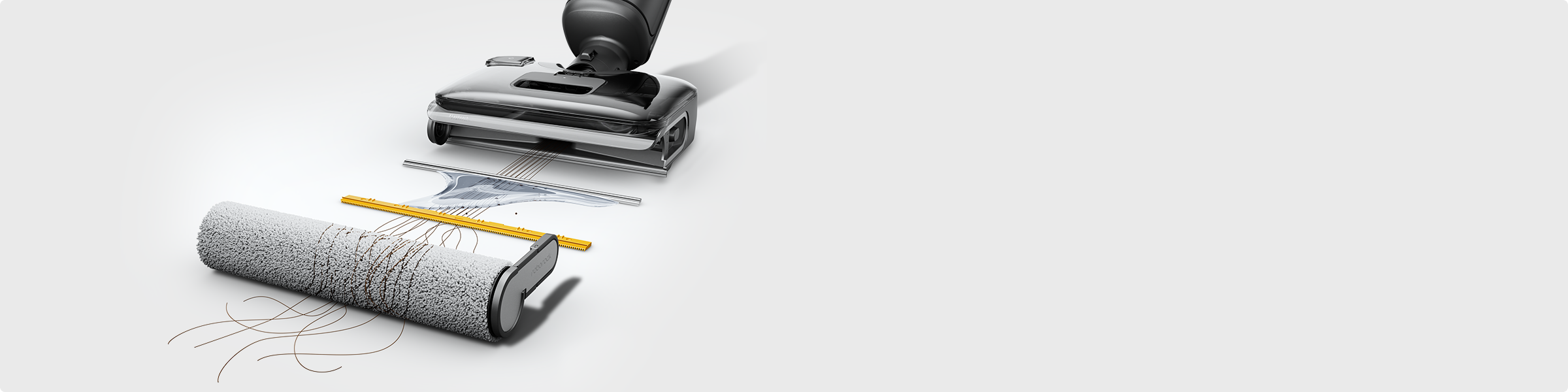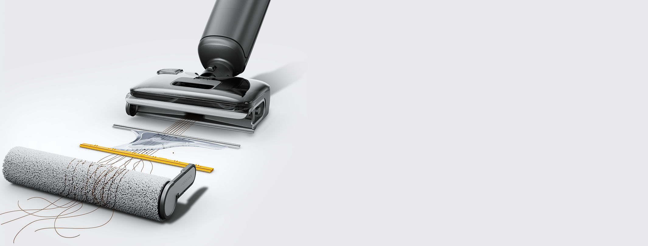 本体と互換性のある取り外し可能な3つのヘッドにより、吸引&水拭き両用のコードレス掃除機から、隙間用クリーナー、布団用クリーナー、コードレススティック掃除機に変形します。