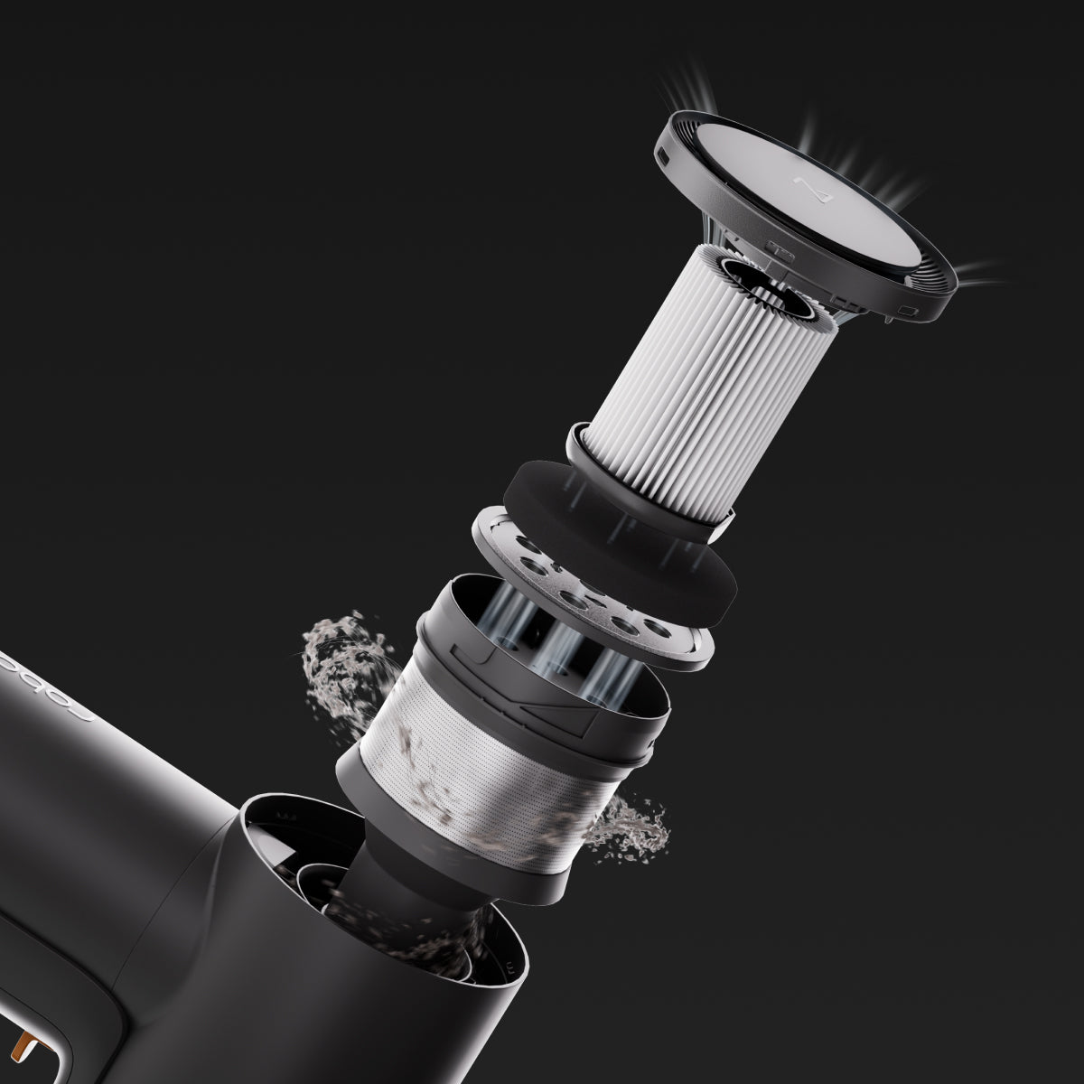 強力なサイクロン力とミクロレベルの5層フィルターを組み合わせることで、PM2.5より8倍小さい塵の粒子を分離し、フィルターの詰まりや塵による汚染を防ぎます。