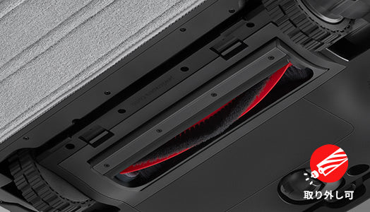 サイドブラシは、弧状デザインの非対称サイドブラシを採用。遠心力を利用したしなやかな動作によって、長い髪の毛やペットの毛などのからまりを抑えながら、ゴミをかき集めます。