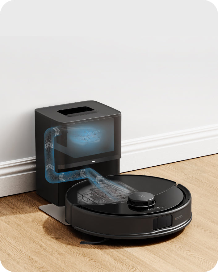 7週間分のゴミを本体から自動で吸い上げ、ゴミを捨てる手間を大幅に削減。紙パック式なので、ゴミを捨てる際に舞い散るホコリが気になる方も安心です。0.3μmまでの微粒子(花粉)を99.7%吸引し排気を清浄化します。