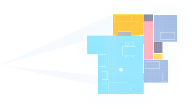 室内を素早く正確にマッピングし、部屋の形状を把握します。
