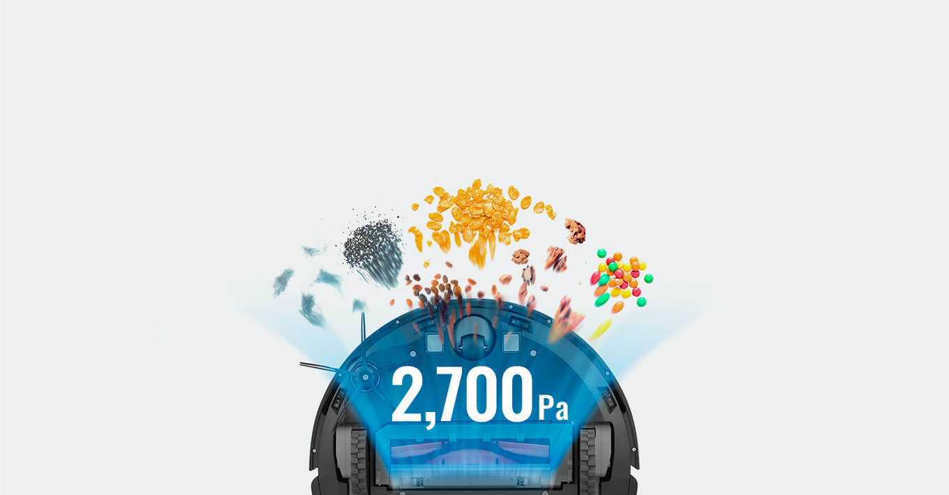 2,700Paのパワフルな吸引力で、微細なハウスダストからペットのトイレ砂まで一気に吸い込みます。
