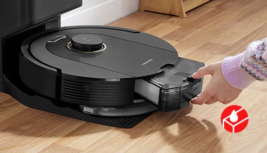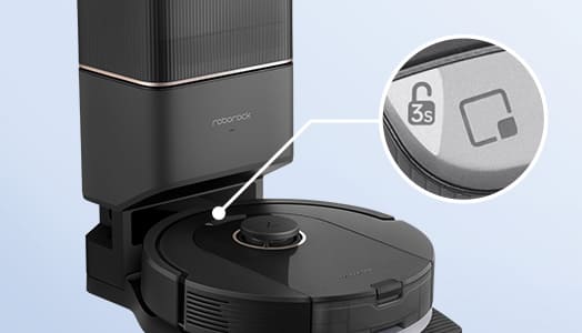 掃除完了後、本体のダストボックスに溜まったゴミを自動で吸い上げ、ゴミを捨てる手間を減らします。