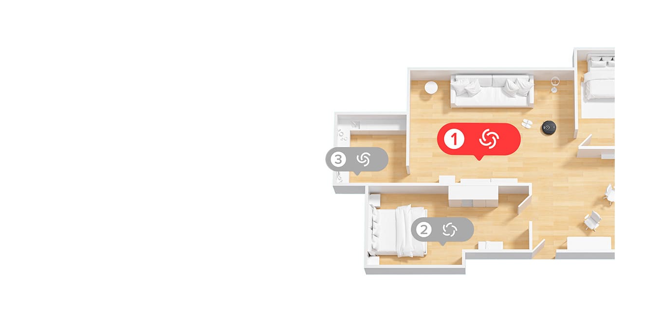 「お急ぎ掃除モード」は、通常ルートの掃除より30%速く掃除を完了します。また、クイックマッピングは、掃除しながらマッピングする従来の方式と比較して、最大6倍の速さで各部屋のマッピングを行います。