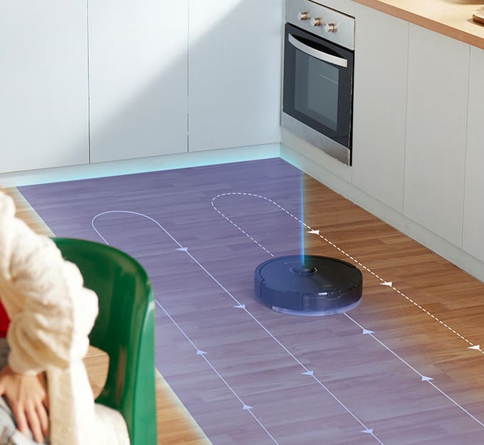 環境を学習し、部屋に適応することで最適な掃除を行います。