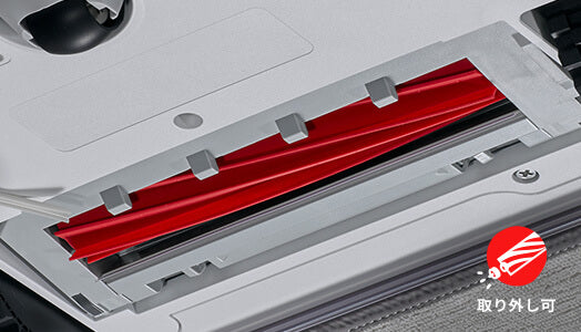メインブラシは、3次元に動くことにより凹凸のある床面にもピタリと密着。ホコリやゴミをしっかりと取り込みます。柔らかなラバー素材で耐久性に優れ、床を傷付ける心配もありません。