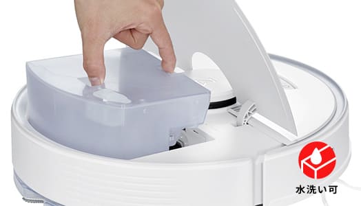 掃除機本体の水タンクに水道水と一緒に投入することで、洗剤を使用した水拭きが行え、皮脂や汚れをキレイに除去します。