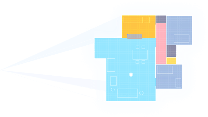 室内を素早く正確にマッピングし、部屋の形状を把握します。