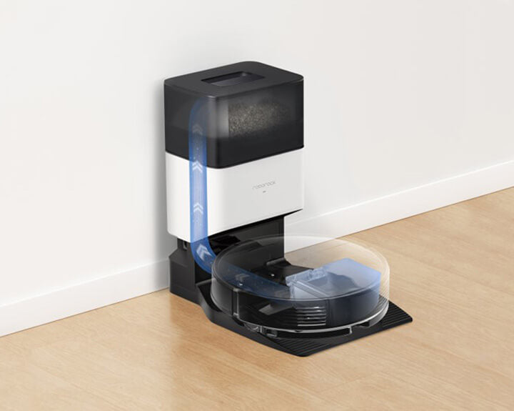 掃除完了後、本体のダストボックスに溜まったゴミを自動で吸い上げ、ゴミを捨てる手間を減らします。