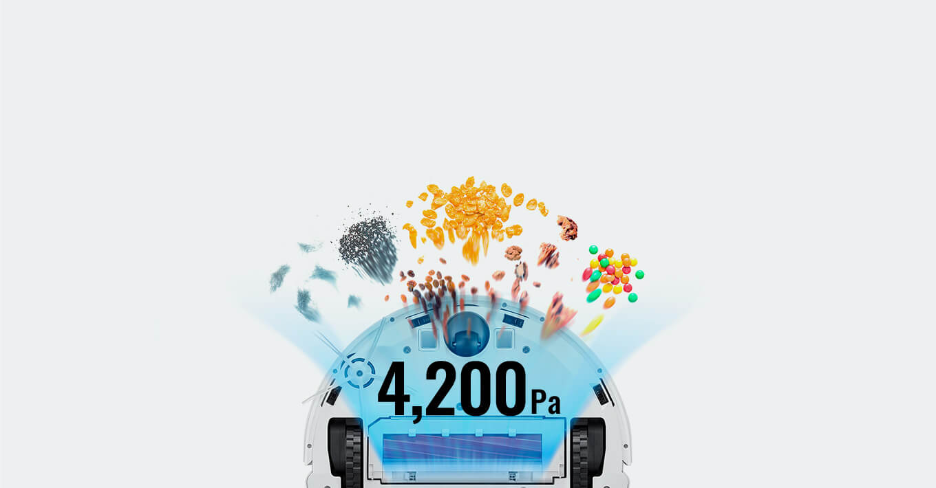 4,200Paのパワフルな吸引力で、微細なハウスダストからペットのトイレ砂まで一気に吸い込みます。