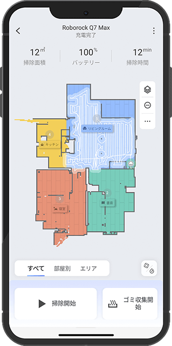 掃除をしながら部屋のマップをリアルタイムで作成し、アプリ上に表示します。