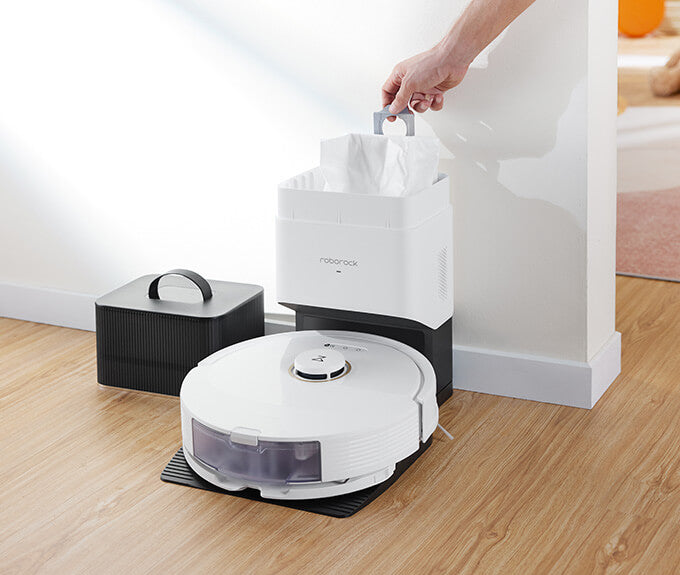 掃除完了後、本体のダストボックスに溜まったゴミを自動で吸い上げ、ゴミを捨てる手間を減らします。