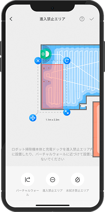 最大10カ所まで、進入禁止エリアやバーチャルウォールの
