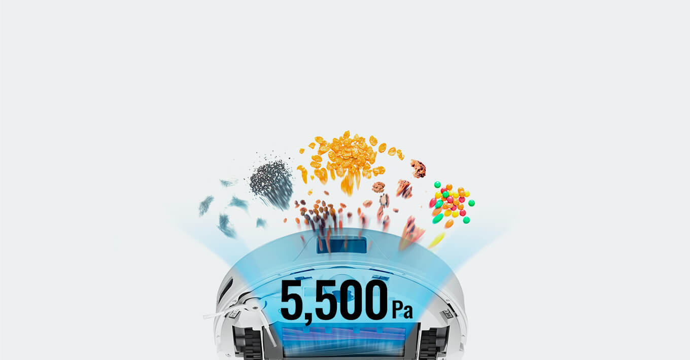 5,500Paのパワフルな吸引力で、微細なハウスダストからペットのトイレ砂まで一気に吸い込みます。