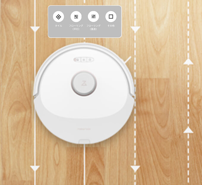 フローリングの木目やタイルの目地に沿って掃除をさせることができ、 床の溝への擦れも最小限に抑えます。