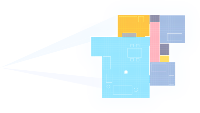 室内を素早く正確にマッピングし、部屋の形状を把握します。