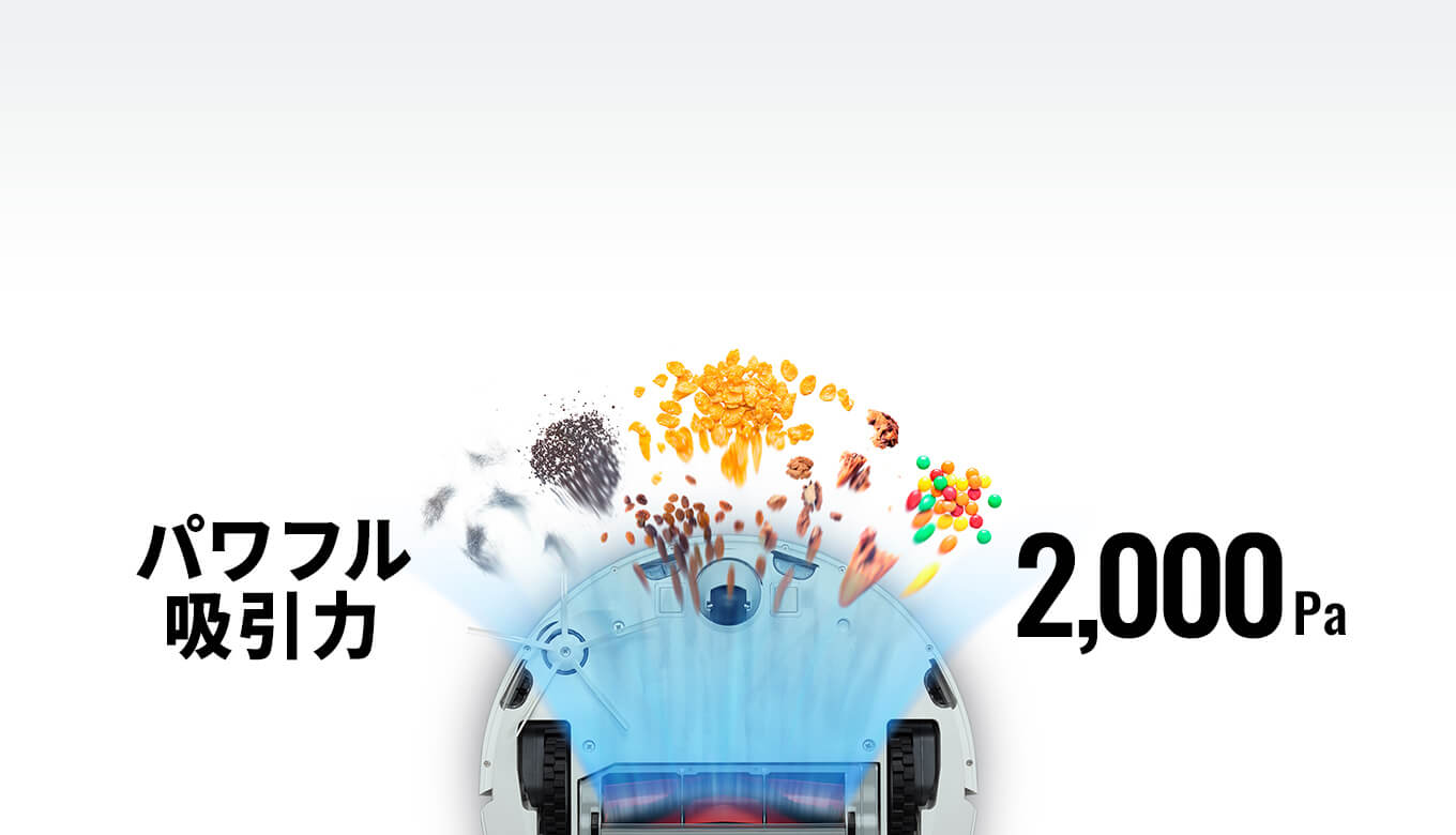 2,000Paのパワフルな吸引力で、微細なハウスダストからペットのトイレ砂まで一気に吸い込みます。