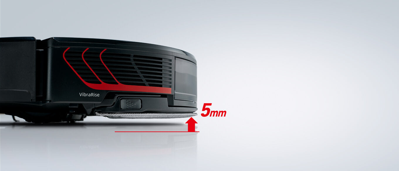 カーペットを感知すると、水拭きモップが自動的に5mmリフト