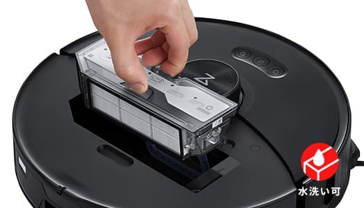 ダストボックス。ダストボックスはワンタッチで取り外して水洗いできるので、