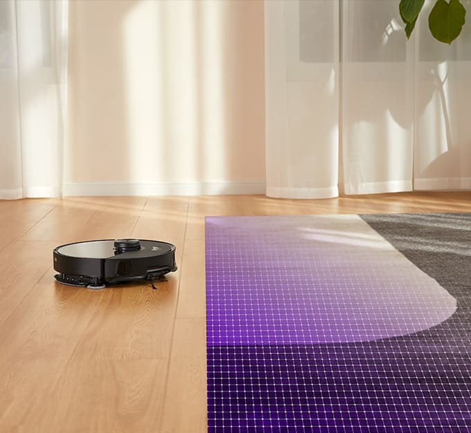 カーペットのある場所を認識し、カーペットを避けて掃除ができます。