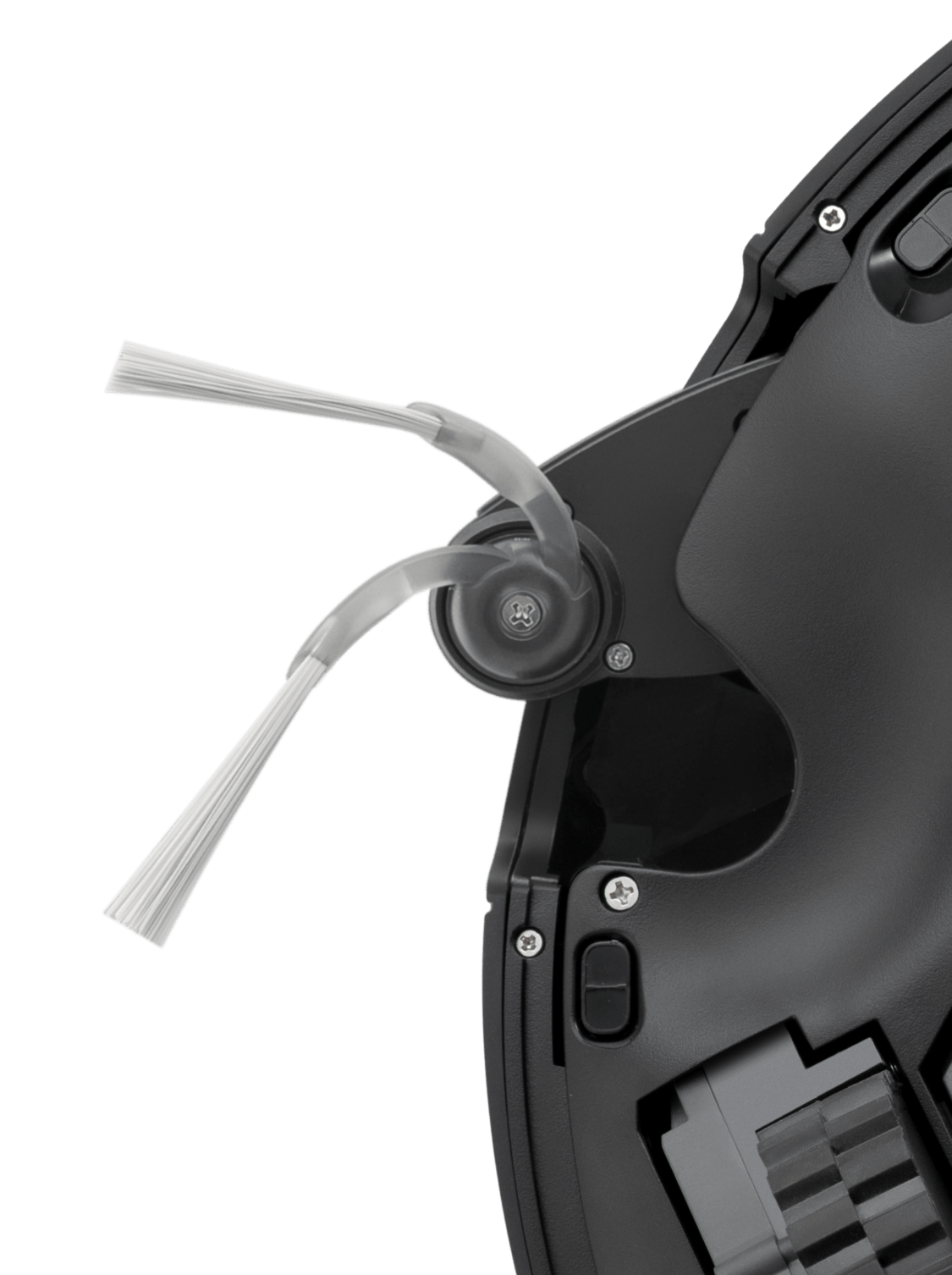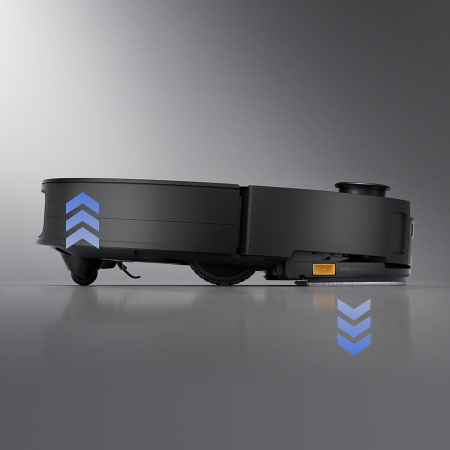 壁を検知すると自動で下降し、効率的に掃除を行い、壁際の掃除が終わると上昇します。