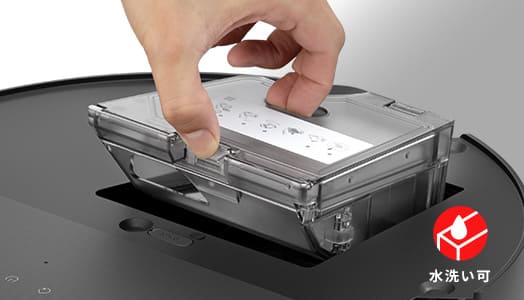 ダストボックス。ダストボックスはワンタッチで取り外して水洗い可能。