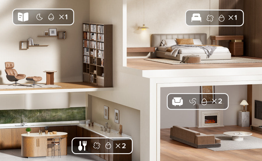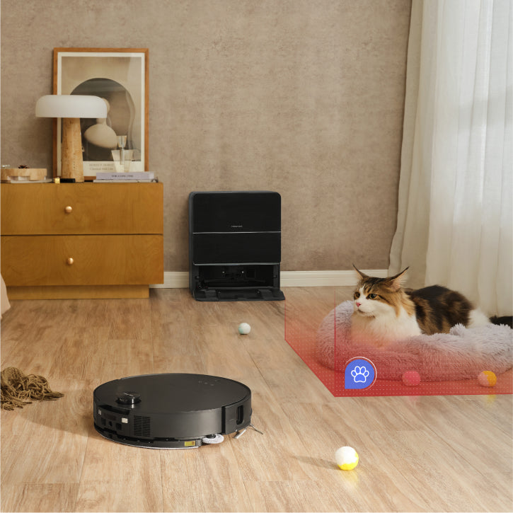 ※障害物の認識精度は、環境などによって異なります。幅3cm、高さ3cm以上の物体を回避します。表示されるアイコンが実際と異なる場合があります。100%の回避を保証するものではありません。明るい部屋でのRoborockの検証に基づく結果です。